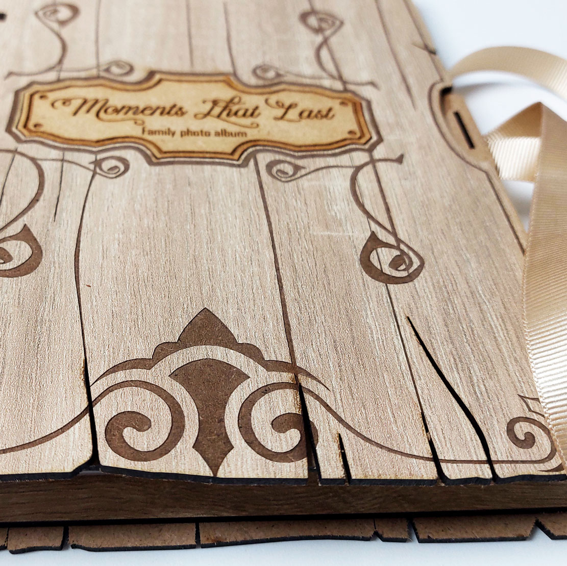 Descopera albumul foto de familie cu coperti din lemn, un cadou deosebit, pentru pastrarea amintirilor pretioase. Cu o coperta din lemn, sonoma, taiat si gravat cu precizie laser, acest album emana eleganta si rafinament. Designul sau unic pe piata adauga o nota personala, fie ca e vorba de un mesaj special sau de un model reprezentativ pentru familia ta.