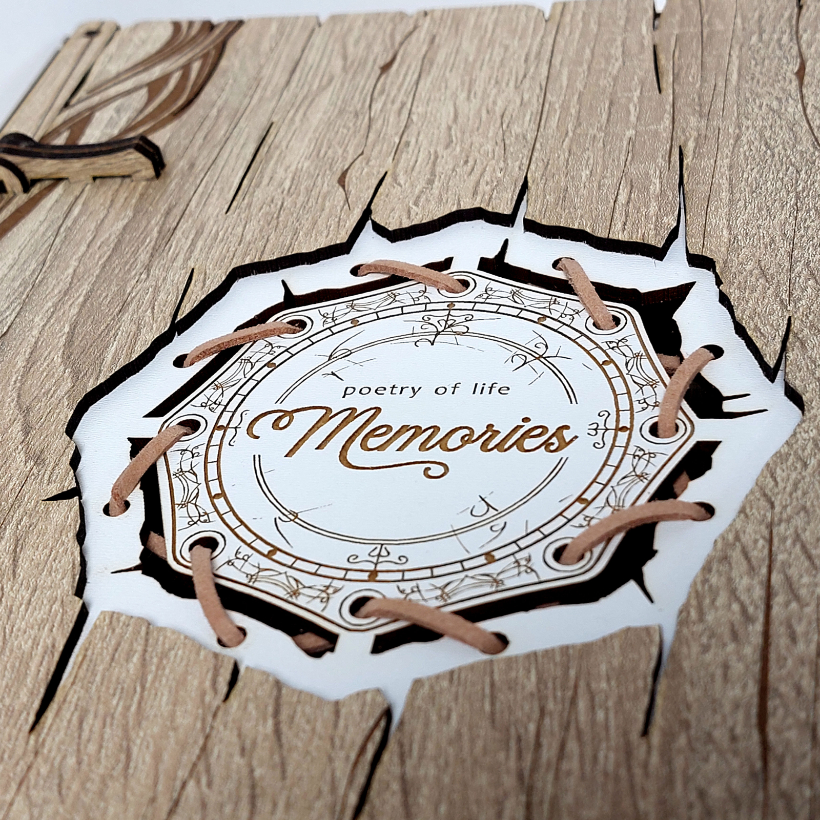 Caseta amintirilor este confectionata integral din lemn, inclusiv balamalele si incuietoarea, iar prin fiecare detaliu emana calitate si eleganta. Adevarata sa valoare sta insa in frumusetea gravurilor de pe exteriorul sau ce iti vor incanta inima si sufletul.