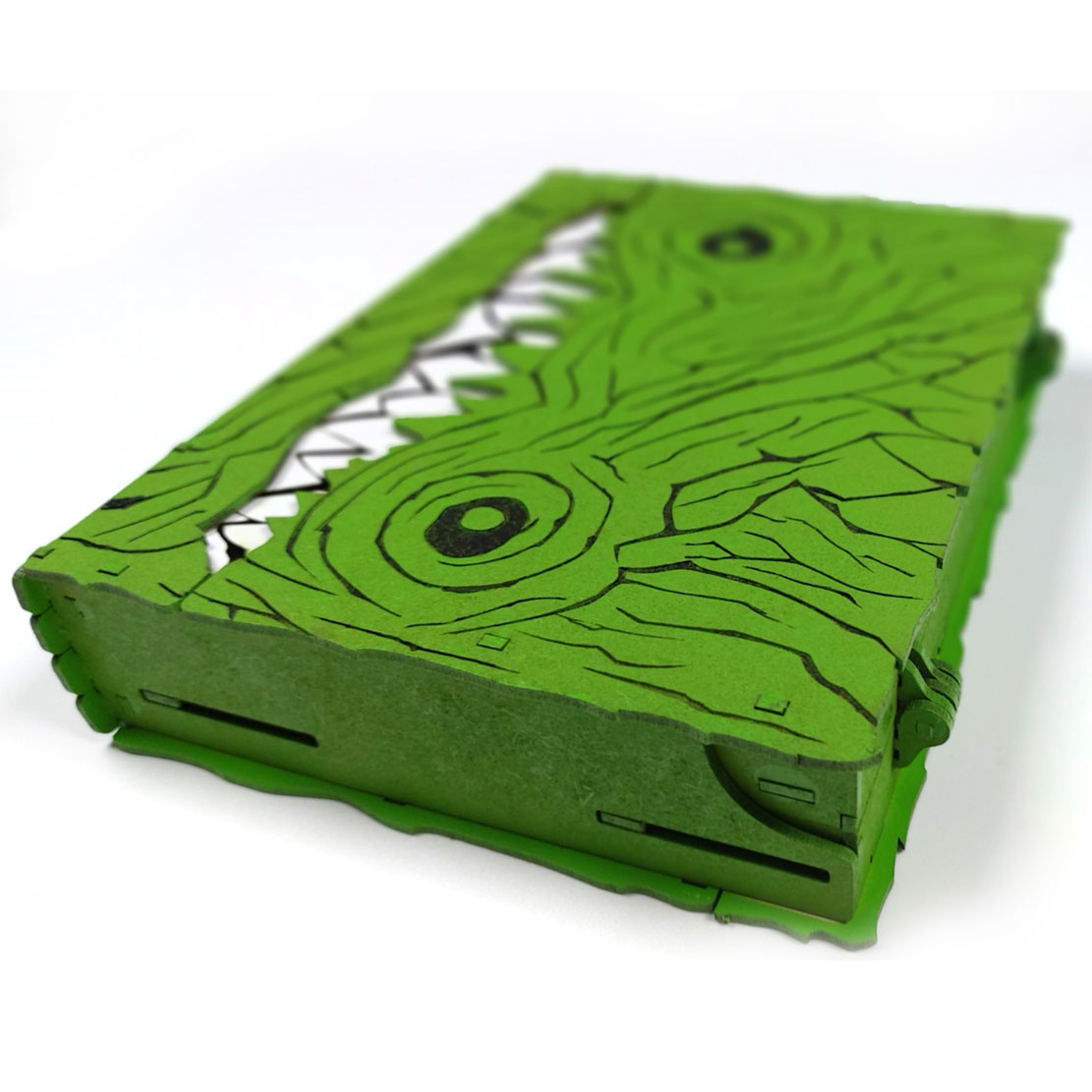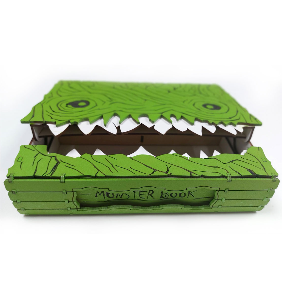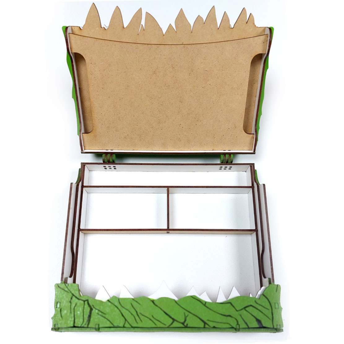 Cu dantura realistă, atent sculptată și pictată, și cu un mecanism de deschidere ingenios, fiecare detaliu al acestei creații este gândit pentru a încânta și a surprinde. În interior, micii exploratori vor găsi mai multe compartimentări ascunse – perfecte pentru comori, bijuterii, pietricele sau secrete doar de ei știute.