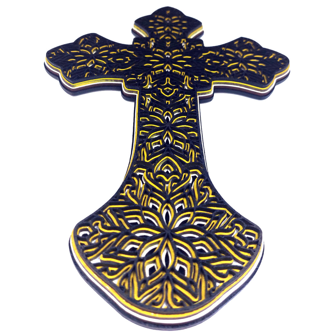 Descopera eleganta si spiritualitatea in forma crucii noastre din lemn, o veritabila capodopera de arta. Realizata cu pricepere din straturi multiple din lemn, fiecare pictat cu delicatete manuala, aceasta cruce raspandeste o atmosfera divina. Fie ca o amplasezi pe peretele casei tale, creand un adapost sacru, sau o oferi ca un dar pretios, aceasta bijuterie spirituala va incanta inima oricarui credincios. Facuta cu grija si adanc respect pentru credinta, aceasta cruce intruchipeaza frumusetea si devotamentul, aducand o binecuvantare in fiecare camin.